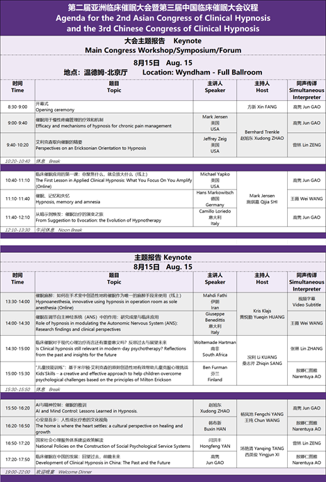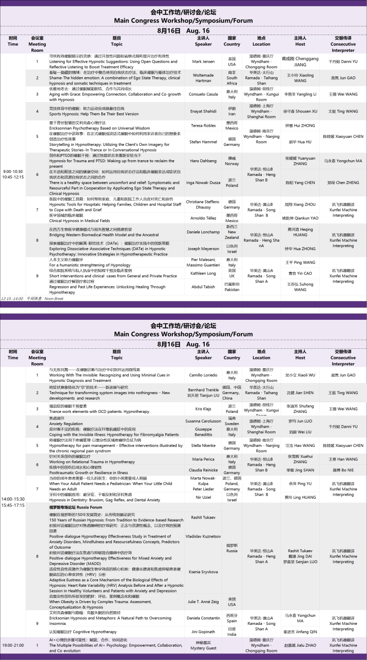 大会主体仅向专业人员开放,包括从事心理工作、临床催眠的专业人员(如医院医护人员、大学心理咨询老师、中小学心理老师、个人执业咨询师、特殊职业(公安、武警、解放军等)、社会工作者、心理学相关专业在校学生、心理教练等)及心理健康相关产业(心理测评、图书、仪器设备、软件硬件等)等。谢绝心理学爱好者和非专业背景人员参加。